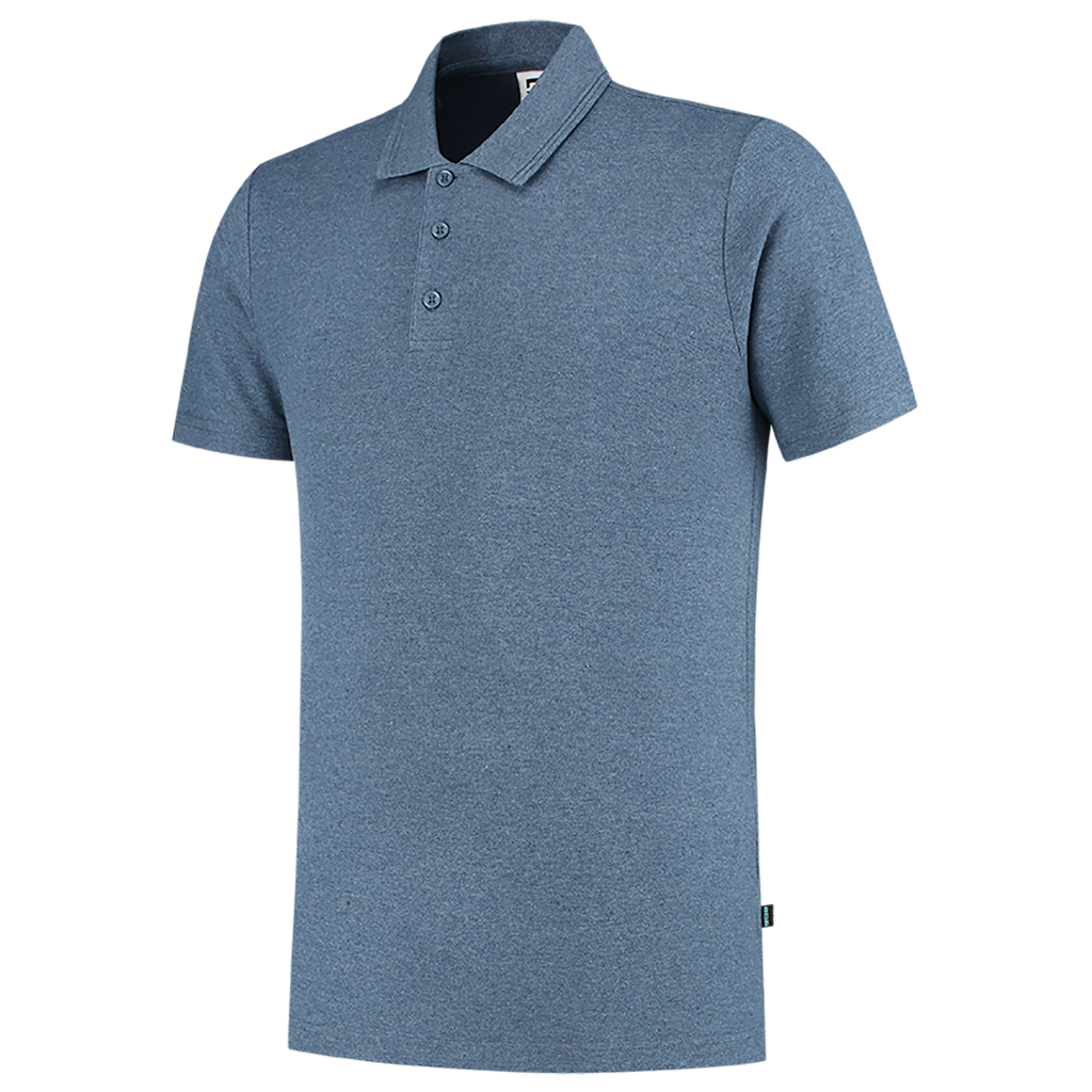 Dit duurzame poloshirt is gemaakt van 50% gerecycled katoen en 50% polyester. Verkrijgbaar in de kleuren denim en marineblauw.
