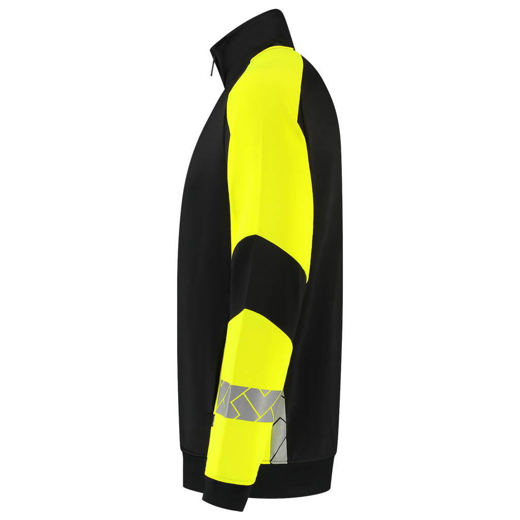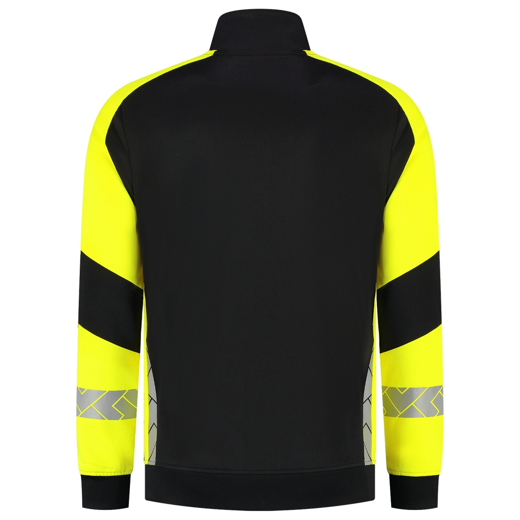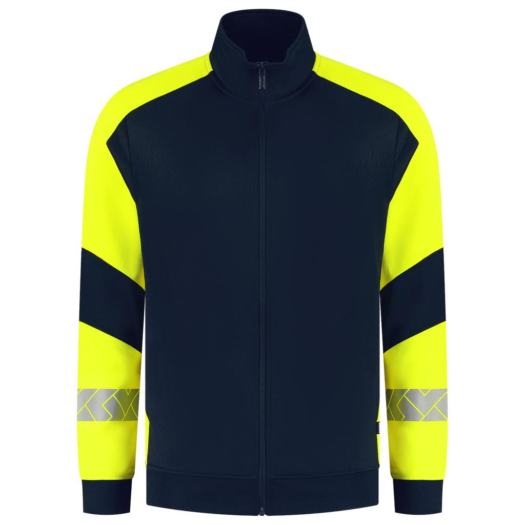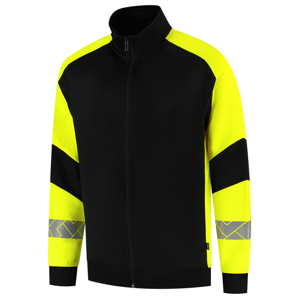 Het Sweatvest Reflective Redefined van Tricorp is gemaakt van 65% gerecycled polyester en 35% biologisch katoen. Dit sweatvest heeft een stevige, geborstelde Amerikaanse fleecevoering aan de binnenkant, een stofgewicht van 280 g/m² en een hoge kraag met ritssluiting, zodat je comfortabel de koudere dagen doorkomt. De segmentale reflecterende strepen op de mouwen en de reflecterende details op de rug zorgen voor een hoog draagcomfort, bewegingsvrijheid en optimale zichtbaarheid, zowel overdag als 's nachts. Het werkvest is gecertificeerd volgens EN ISO 17353 voor zichtbaarheid bij gemiddeld risico en kan gewassen worden op 60 graden, waarbij de zichtbaarheid minstens 50 wasbeurten behouden blijft. De ingezette zakken met ritssluiting houden uw spullen veilig, terwijl de normale pasvorm ervoor zorgt dat u comfortabel kunt werken. Het Reflective Redefined sweatvest is perfect voor professionals in de bouw, logistiek en industrie die hun werk serieus nemen en hun veiligheid nog serieuzer. Verkrijgbaar in de kleuren zwart-fluor geel en inkt-fluor geel, en in de maten XS tot en met 5XL. Combineer dit sweatvest met andere items uit de Reflective Redefined-lijn voor een complete, professionele en duurzame werkoutfit.