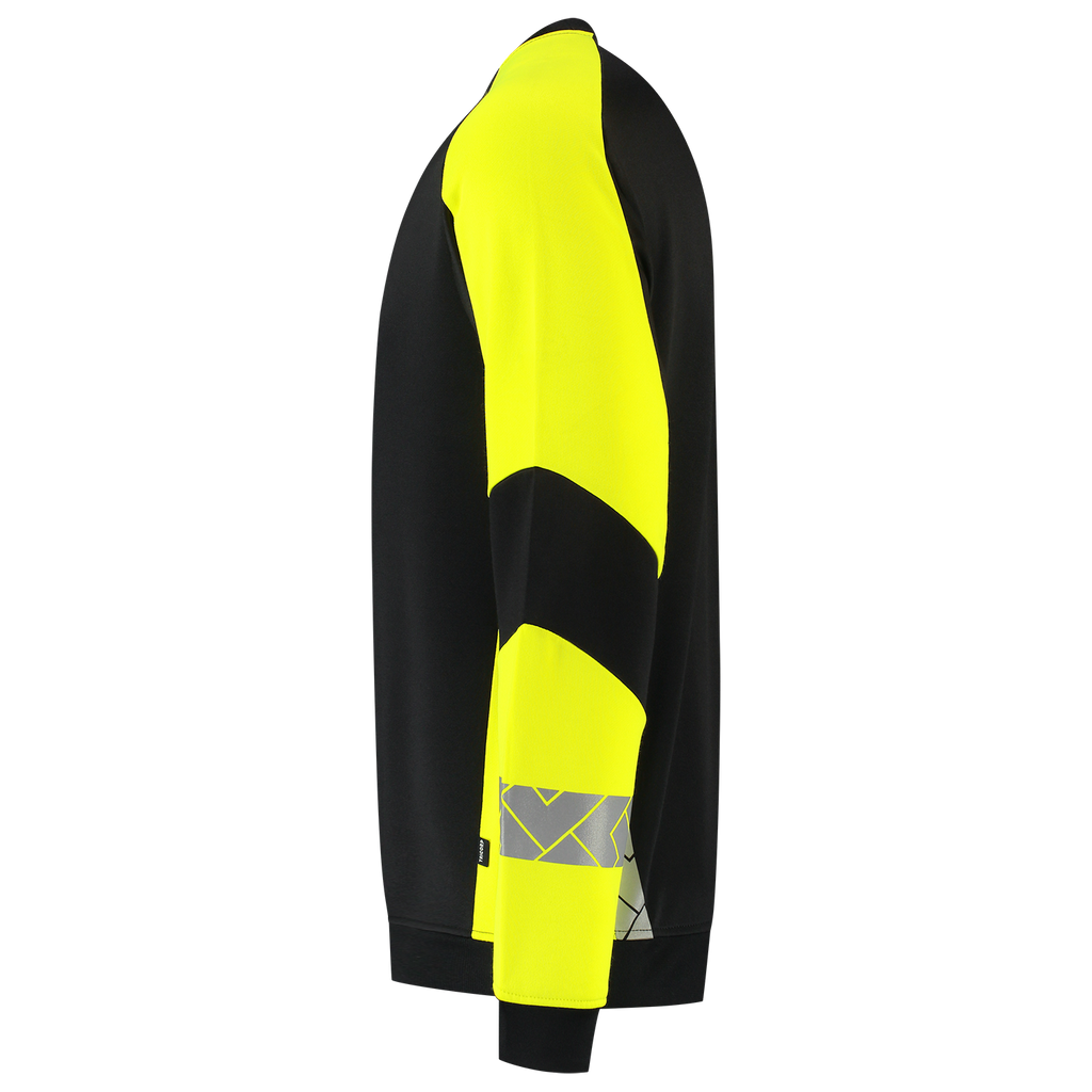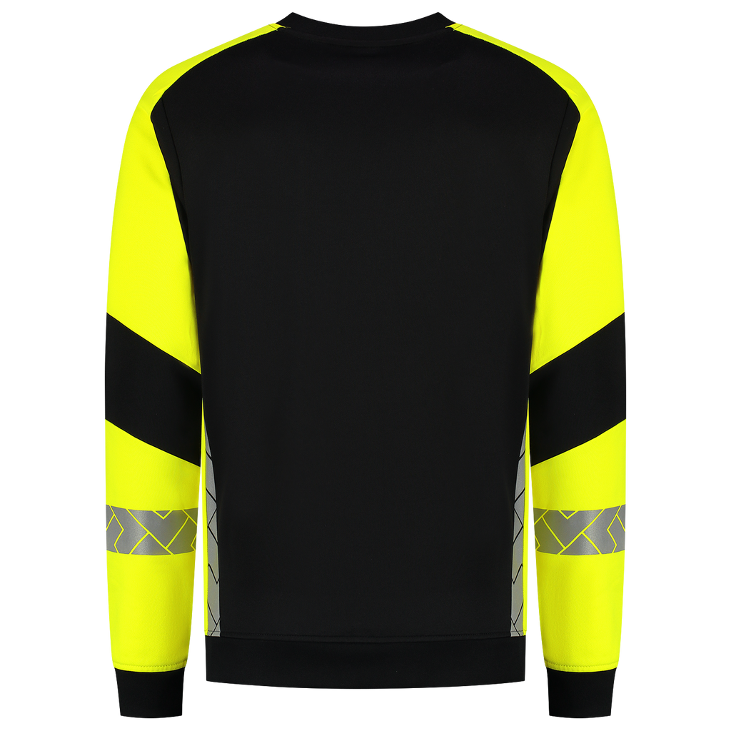 De Sweater Reflective Redefined van Tricorp is uw betrouwbare partner voor zichtbaarheid en comfort op de werkvloer. Deze unisex trui is gemaakt van 65% gerecycled polyester en 35% biologisch katoen en heeft een zachte Amerikaanse fleecevoering aan de binnenkant. Dankzij de reflecterende segmenten op de mouwen en de rug blijft u dag en nacht zichtbaar volgens de EN ISO 17535-norm voor middelhoog risico. Met een stofgewicht van 280 g/m² en een normale pasvorm zit de Sweater Reflective Redefined als gegoten. Dankzij de Polygiene® StayFresh-technologie blijft je trui langer fris, zelfs na intensief gebruik. Deze eigenschap blijft behouden tot wel 50 wasbeurten op 60 °C, waardoor slijtage of verminderde zichtbaarheid geen probleem vormen. Perfect voor professionals in de bouw, logistiek of industrie die veiligheid en duurzaamheid willen combineren. Verkrijgbaar in de maten XS tot en met 5XL en in de kleuren Zwart-Fluor Geel en Inkt-Fluor Geel. Combineer deze trui met andere items uit de Reflective Redefined-lijn voor een complete, professionele en duurzame werkoutfit.