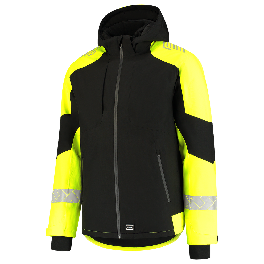 De Ripstop Reflective Redefined winterjas biedt ongeëvenaarde bescherming tegen kou, wind en regen, zonder in te leveren op comfort of zichtbaarheid. Deze jas is gemaakt van 100% gerecycled polyester in een sterke ripstop-weefstructuur met een stofgewicht van 200 g/m² en is voorzien van een lichtgewicht Primaloft®-voering, zodat u warm blijft zonder oververhitting. Dankzij de waterdichte en ademende eigenschappen volgens EN 343 4-2 en de koude-isolatie volgens EN 14058 3-3-WP bent u klaar voor de zwaarste omstandigheden. De jas is voorzien van een afneembare en verstelbare capuchon, een ingezette borstzak met ritssluiting, een fleece kraag, een verstelbaar trekkoord in de taille, waterdichte ritsen en verstelbare manchetten met een zachte tricot voering voor extra comfort. Het verlengde rugpand biedt extra bescherming tijdens het bewegen of hurken. Dankzij de slimme reflecterende elementen op de rug, schouders en mouwen bent u zowel overdag als 's nachts goed zichtbaar in werkomgevingen met een gemiddeld risicoprofiel. Bovendien kiest u met deze winterjas bewust voor mens en milieu; met de GRS- en OEKO-TEX® 100-certificeringen zit u goed. De Redefined winterjas Ripstop Reflective is verkrijgbaar in de maten XS tot en met 5XL en in de kleuren zwart-fluor geel en inkt-fluor geel. Combineer deze jas met andere items uit de Redefined-lijn voor een complete, professionele en duurzame werkoutfit.