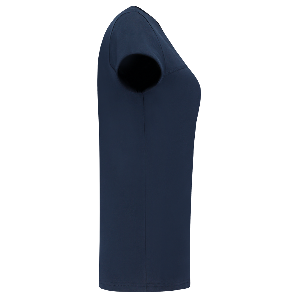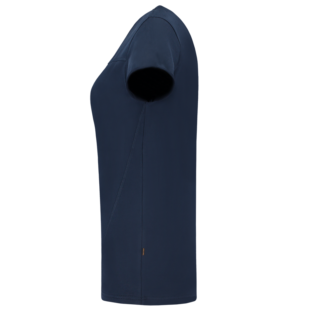 Premium T-shirt met een innovatieve Tricorp-look. Het shirt heeft een stiksel over de borst en het Tricorp-logo is door middel van een reliëf op de mouw aangebracht. De ronde hals en getailleerde pasvorm geven je werkoutfit een modieuze uitstraling. Dankzij de gekamde katoen en elastaan blijft de pasvorm van dit shirt altijd goed. De omgeslagen mouwen zorgen voor een vrouwelijke look. Alle premium T-shirts hebben een perzikkleurige afwerking, wat het product een luxere uitstraling geeft.