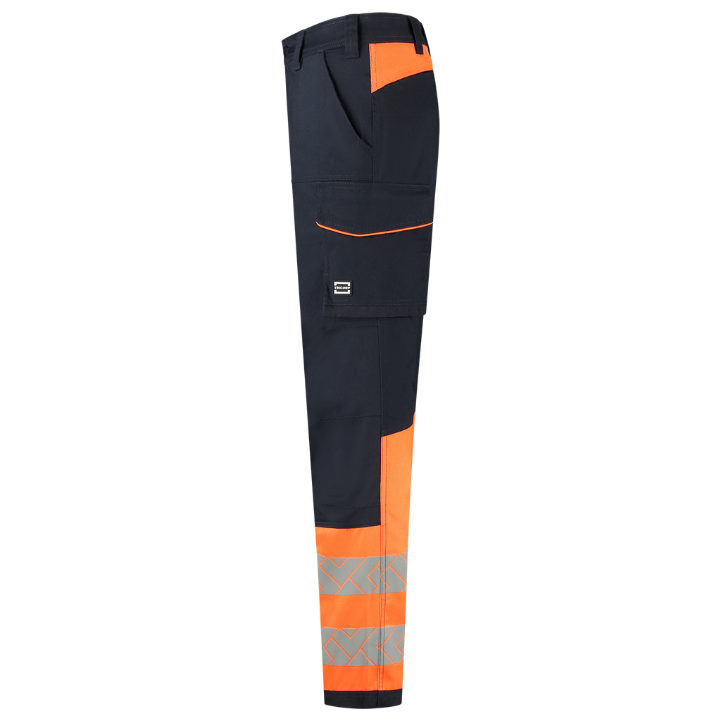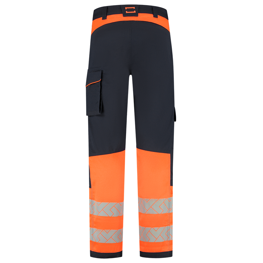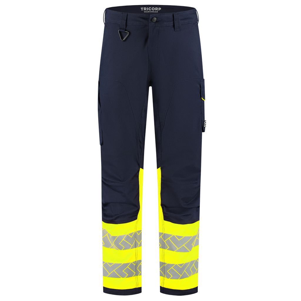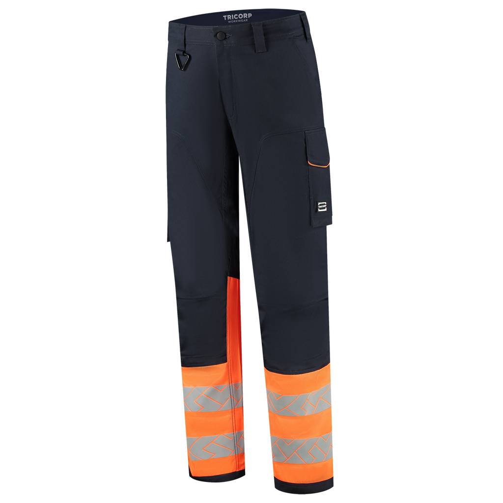 De Tricorp Work Pants 2-Way Stretch High Vis Redefined is voor professionals die gezien moeten worden. Dankzij de EN ISO 20471 klasse 1-norm en de segmentale reflectie blijft u perfect zichtbaar, zelfs bij weinig licht. Deze broek combineert 58% gerecycled polyester, 40% biologisch katoen en 2% elastaan in een stofgewicht van 250 g/m², waardoor de comfortabele 2-way stretch soepel meebeweegt tijdens elke taak. Dankzij de versteviging met polyamide Cordura® op kwetsbare plekken is deze broek bestand tegen zelfs de zwaarste klussen. Praktisch in gebruik met slimme vakken zoals een liniaalvak, een multifunctioneel dijbeenvak met klep en een speciaal vak voor je smartphone, zodat je je gereedschap en benodigdheden altijd binnen handbereik hebt. De ritssluiting, riemlussen, keuze uit drie lengtes, afneembare D-ring en de verbeterde pasvorm zorgen voor optimaal draagcomfort, dag in dag uit. Verkrijgbaar in verschillende lengtes voor de juiste pasvorm. Deze broek is OEKO-TEX® Standard 100, GRS en OCS gecertificeerd en wasbaar op 60 graden, perfect voor intensief en langdurig gebruik. De Work Trousers 2-Way Stretch High Vis Redefined zijn verkrijgbaar in de maten 42-66, 45-59 en 22-29 en in de kleuren Ink-Fluor Orange en Ink-Fluor Yellow. Combineer deze broek met andere items uit de High Vis Redefined-lijn voor een complete, professionele en duurzame werkoutfit.