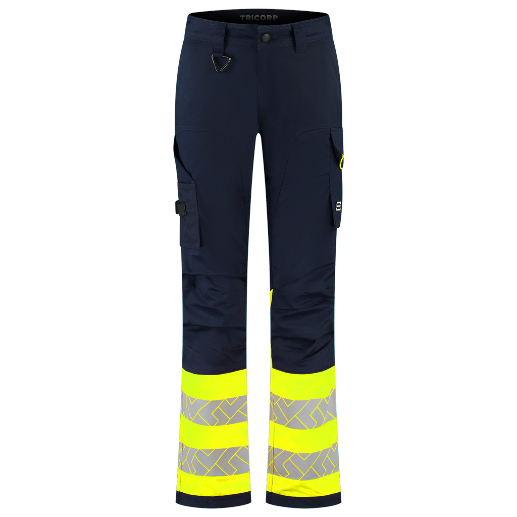 De Tricorp Work Pants 2-Way Stretch High Vis Redefined Women is speciaal ontworpen voor vrouwelijke professionals die zichtbaarheid, bewegingsvrijheid en duurzaamheid op de werkvloer eisen. Met een pasvorm die perfect is afgestemd op vrouwen en slimme details voor dagelijks gebruik, is deze broek de ideale combinatie van comfort en veiligheid. Deze broek is gemaakt van een soepele, in twee richtingen rekbare keperstof van 58% gerecycled polyester, 40% biologisch katoen en 2% elastaan, met een stofgewicht van 250 g/m², en biedt veel comfort tijdens elke werkdag. De Cordura®-verstevigingen op kwetsbare plekken zorgen voor extra duurzaamheid, terwijl de reflecterende strepen rond de pijpen optimale zichtbaarheid garanderen volgens de EN ISO 20471-norm. Ideaal voor werkomgevingen waar veiligheid en zichtbaarheid van vitaal belang zijn, zoals in de bouw, infrastructuur of logistiek. De Work Pants 2-Way Stretch High Vis Redefined Women zijn voorzien van functionele opbergmogelijkheden zoals twee zijzakken, twee achterzakken, een praktische duimstokzak, een dijzak met klep en een afneembare D-ring. De normale damespasvorm zorgt ervoor dat de broek mooi aansluit en comfortabel zit, zelfs bij veel beweging. Deze werkbroek is wasbaar op 60°C en behoudt zijn zichtbaarheid tot wel 50 wasbeurten. Bovendien voldoet hij aan de GRS- en OCS-normen en is hij OEKO-TEX® 100 gecertificeerd, waardoor hij verantwoord is voor mens en milieu. De werkbroek 2-way stretch High Vis Redefined voor dames is verkrijgbaar in maat 32 t/m 48 en in de kleuren Ink-Fluor Oranje en Ink-Fluor Geel. Combineer deze broek met andere items uit de High Vis Redefined-lijn voor een complete, professionele en duurzame werkoutfit.