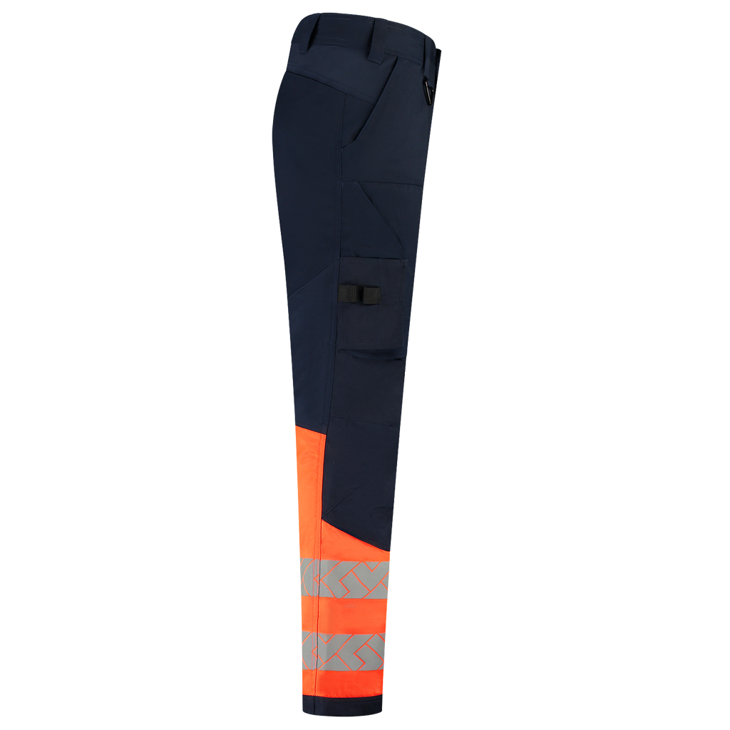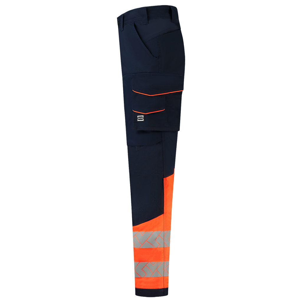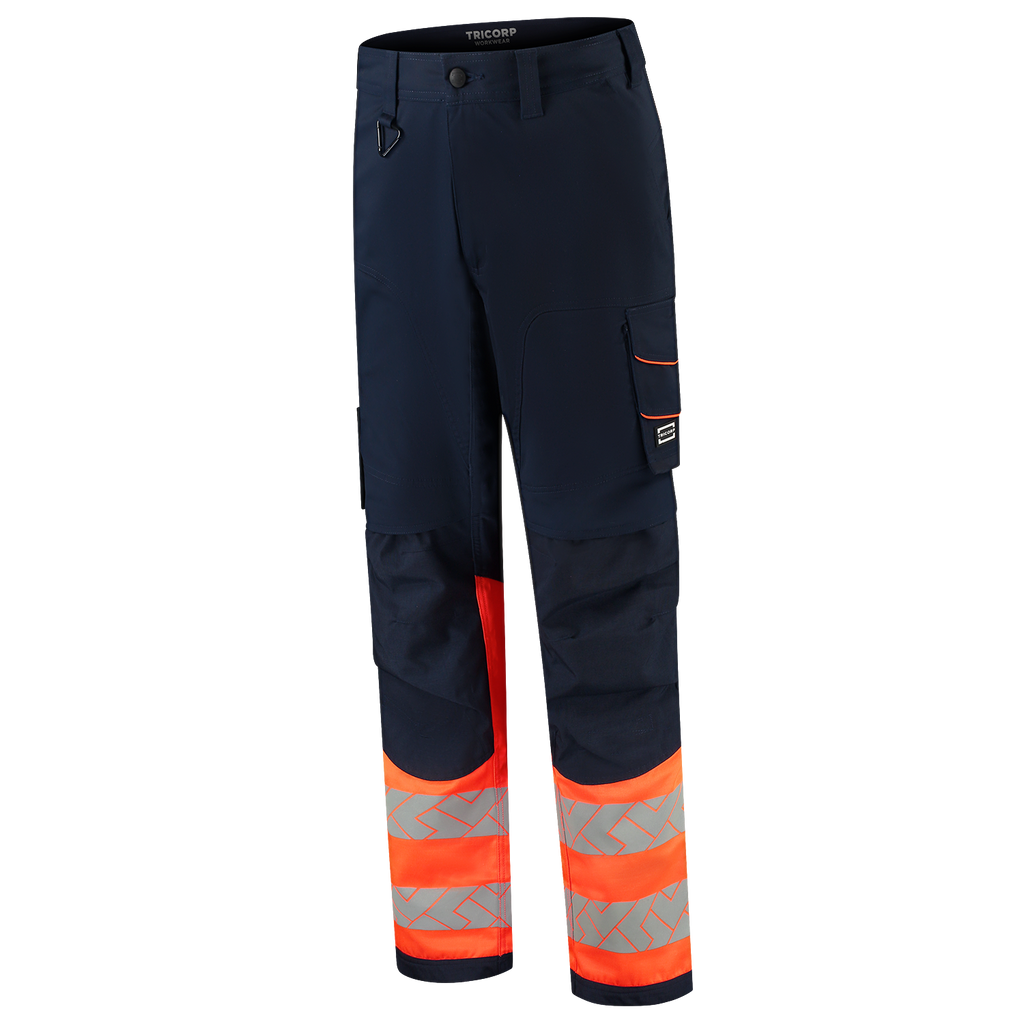 De Tricorp Work Pants Functional Stretch High Vis Redefined is dé oplossing voor comfort, zichtbaarheid en duurzaamheid op de werkvloer. Gemaakt van een stevige maar flexibele materiaalmix van 58% gerecycled polyester, 40% biologisch katoen en 2% elastaan, met een stofgewicht van 250 g/m², biedt deze broek niet alleen een duurzame keuze, maar ook maximale bewegingsvrijheid. Dankzij strategisch geplaatste 4-way stretch panelen van 90% polyamide en 10% elastaan in het kruis en aan de achterkant van de knieën, beweegt deze werkbroek soepel met je mee. Het verhoogde achterpand wordt ook ondersteund door 4-way stretch panelen, waardoor de broek altijd perfect past. De combinatie van 2-way stretch twill en ventilatiezones aan de achterkant van de knieën zorgt voor optimaal comfort tijdens fysiek zwaar werk. De slijtvaste, in hoogte verstelbare Cordura® kniezakken zijn bovendien ideaal voor iedereen die regelmatig op de knieën werkt. Dankzij slimme details zoals een duimstokzak, een smartphonezak met klep, een dijzak met volumeplooi en Cordura®-verstevigingen op slijtagegevoelige plekken, is deze werkbroek gemaakt voor actie. De verbeterde pasvorm en de stevige ritssluiting zorgen ervoor dat je altijd klaar bent voor je werk. De broek is voorzien van een afneembare D-ring en praktische riemlussen en is verkrijgbaar in 3 verschillende lengtes. Bovendien zorgt de segmentale reflectie rond de pijpen, conform EN ISO 20471, ervoor dat de broek tot 50 keer gewassen kan worden op 60 graden. Kortom, met deze werkbroek ben je niet alleen overdag, maar ook in het donker zichtbaar! Bovendien draag je met trots een broek gemaakt van gerecycled polyester en biologisch katoen, met zowel het OCS- als het GRS-label en het OEKO-TEX® Standard 100-certificaat. Dat betekent: veilig voor de huid en aantoonbaar duurzaam geproduceerd. De Functional Stretch High Vis Redefined werkbroek is verkrijgbaar in de maten 42-66, 45-59 en 22-29 en in de kleuren Ink-Fluor Oranje en Ink-Fluor Geel. Combineer deze broek met andere items uit de High Vis Redefined lijn voor een complete, professionele en duurzame werkoutfit.
