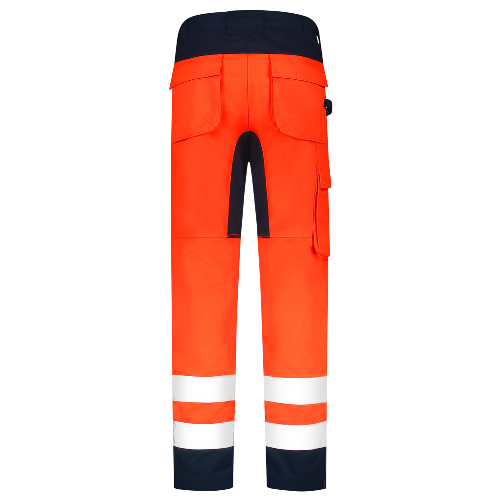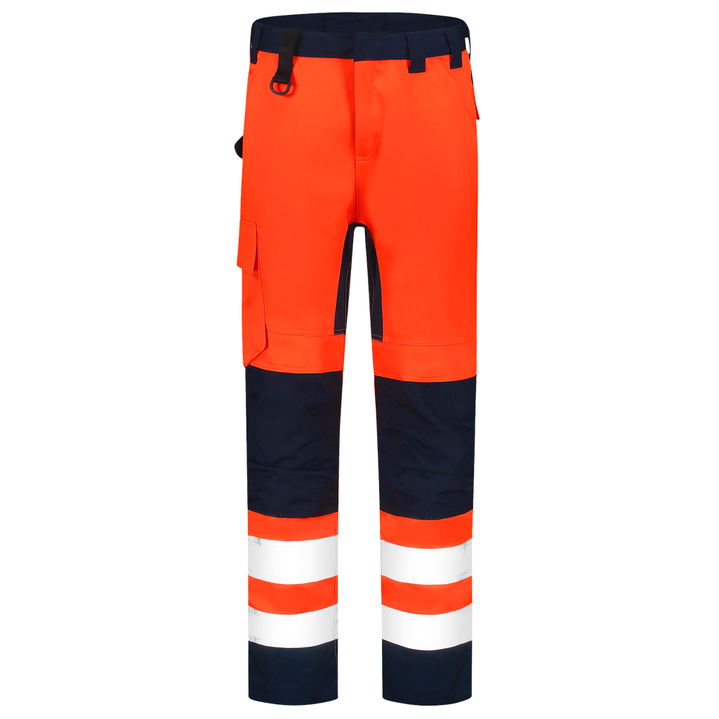 The High Vis Bicolor Work Trousers is part of the 20/20 Vision collection from Tricorp. This collection is fully focused on visually emphasizing the presence of the wearer, making you stand out extra during work. These work trousers are EN ISO 20471:2013 class 1 certified. During work, it is of course very important to be able to move well. The 4-Way Stretch in the crotch therefore ensures optimal freedom of movement. In addition, the work trousers have a concealed button, a D-ring, hammer loop and ruler pocket. To protect the knees, the High Vis Bicolor Work Pants are equipped with sturdy Cordura knee pads. This High Vis Bicolor Work Pants is available in three bicolor colors, including the new color fluorred ink! Tip: for extra storage options during work, attach the matching Swing Pockets (653004) to the belt loops.
