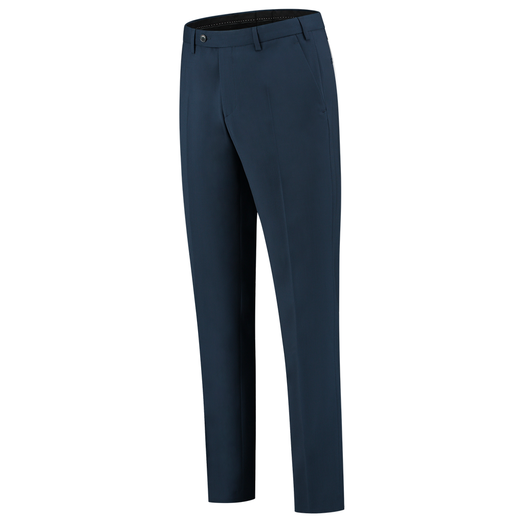 The Men's Business Fitted Trousers have a slim fit that fits nicely on the body. These men's trousers are made from 100% virgin wool. This is reflected in the rich appearance of the fabric quality. Wear these trousers in combination with the Men's Business Fitted Blazer for a complete business look. The Men's Business Fitted Trousers are available in standard and length sizes in the colours Dark Grey and Blue.