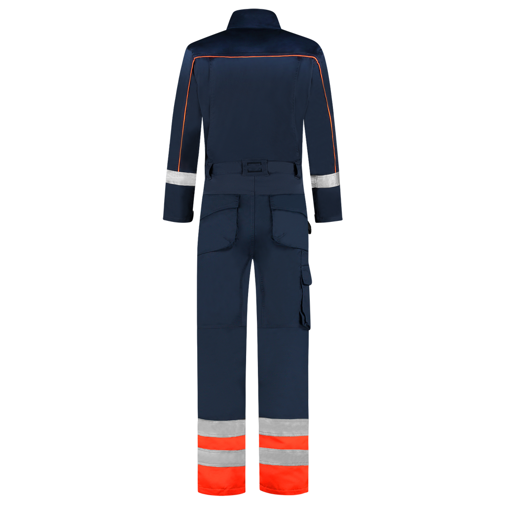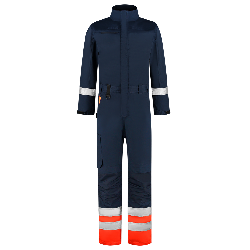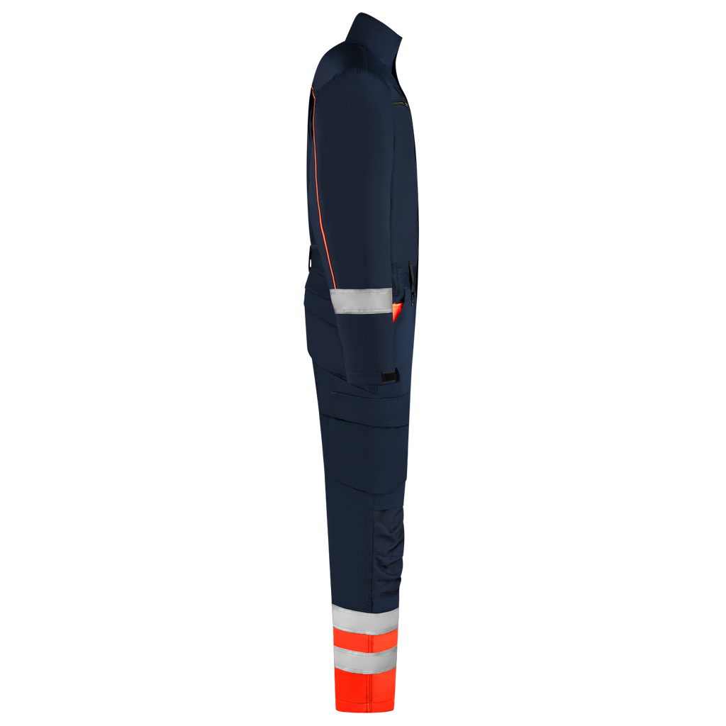 The Overall High Vis is part of Tricorp's 20/20 Vision collection. This collection is fully focused on visually emphasizing the presence of the user, making you stand out extra during work. During work it is of course very important to be able to move well, the 4 Way Stretch in the crotch and a stretch part on the lower back ensures this optimal freedom of movement. In addition, the overall has an adjustable cuff, a D-ring, hammer loop and ruler pocket. To protect the knees, the Overall High Vis is equipped with extra sturdy Cordura knee pads. The 2-way zipper on the front panel is covered by a storm flap. Tip: if all the pockets that are already there with the overall do not offer enough storage options, you can attach the matching Swing Pockets (653004) to the belt loops.