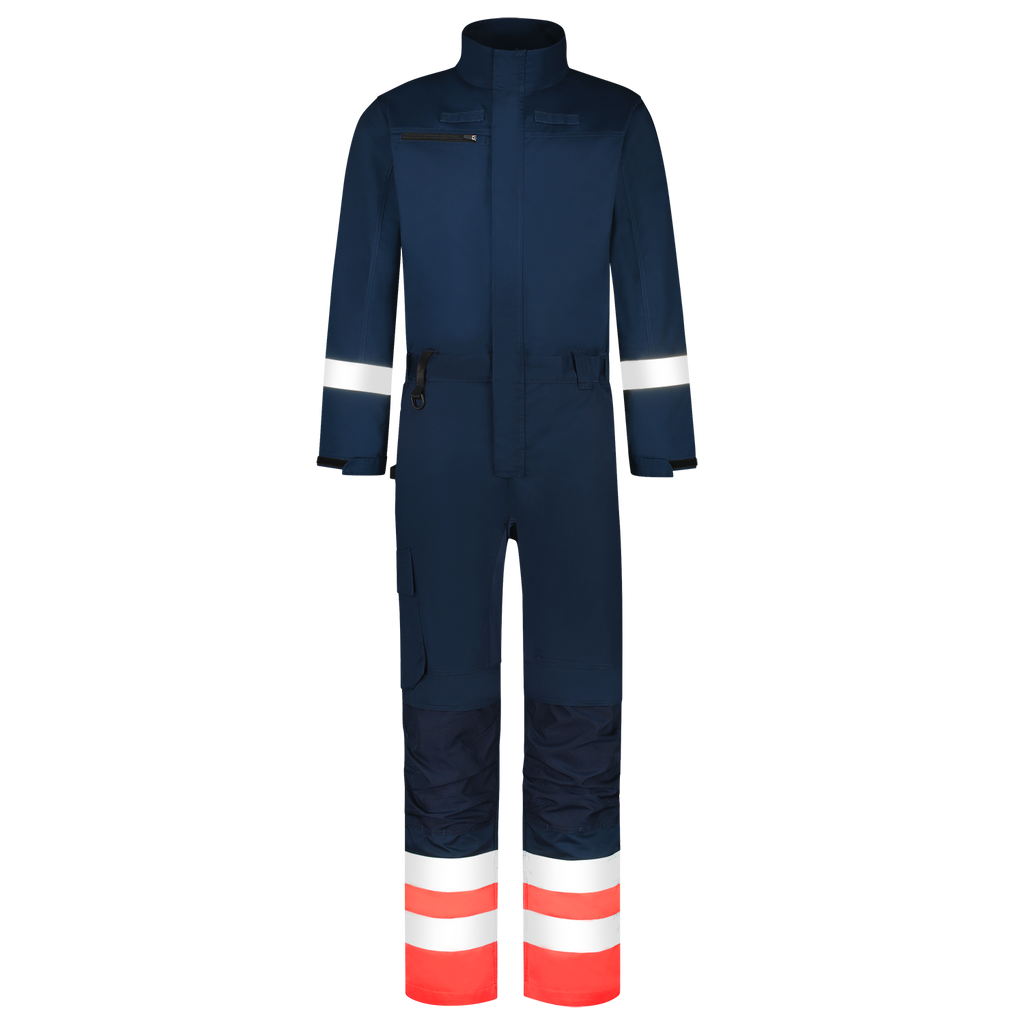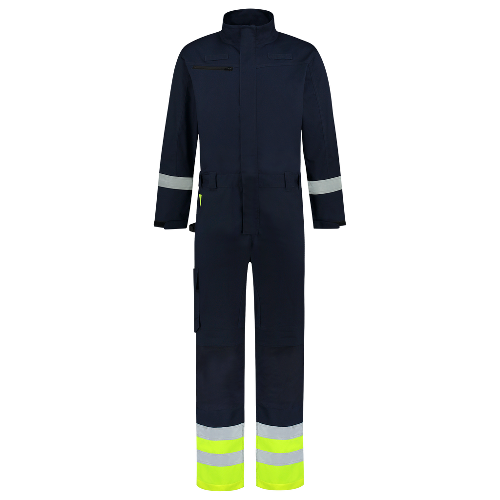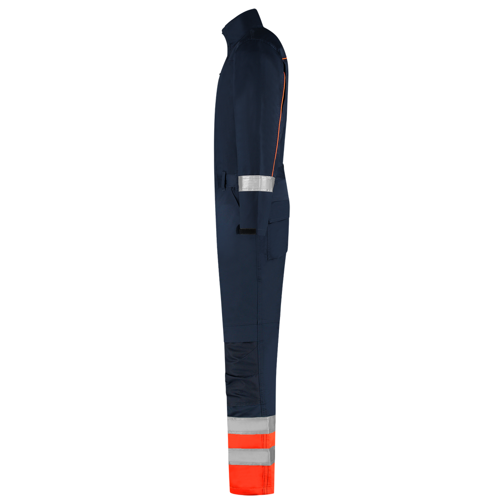 The Overall High Vis is part of Tricorp's 20/20 Vision collection. This collection is fully focused on visually emphasizing the presence of the user, making you stand out extra during work. During work it is of course very important to be able to move well, the 4 Way Stretch in the crotch and a stretch part on the lower back ensures this optimal freedom of movement. In addition, the overall has an adjustable cuff, a D-ring, hammer loop and ruler pocket. To protect the knees, the Overall High Vis is equipped with extra sturdy Cordura knee pads. The 2-way zipper on the front panel is covered by a storm flap. Tip: if all the pockets that are already there with the overall do not offer enough storage options, you can attach the matching Swing Pockets (653004) to the belt loops.