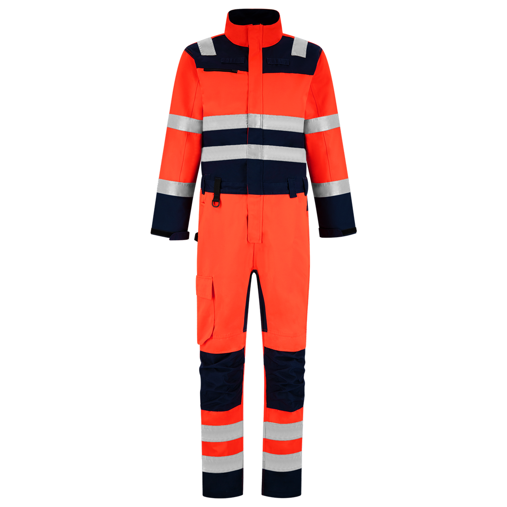 The Overall High Vis Bicolor is part of the 20/20 Vision collection from Tricorp. This collection is fully focused on visually emphasizing the presence of the user, making you stand out extra during work. This is confirmed by the fact that it is EN ISO 20471:2013 class 3 certified. During work it is of course very important to be able to move well, the 4-Way Stretch in the crotch and a stretch part on the lower back ensure this optimal freedom of movement. In addition, the overall has an adjustable cuff, a D-ring, hammer loop and ruler pocket. To protect the knees, the Overall High Vis Bicolor is equipped with extra sturdy Cordura knee pads. The 2-way zipper on the front panel is covered by a storm flap. The Overall High Vis Bicolor is available in three bicolor colors, including the new color fluorescent-red ink! Tip: if all the pockets that are already there with the overall do not offer enough storage options, you can attach the matching Swing Pockets (653004) to the belt loops.