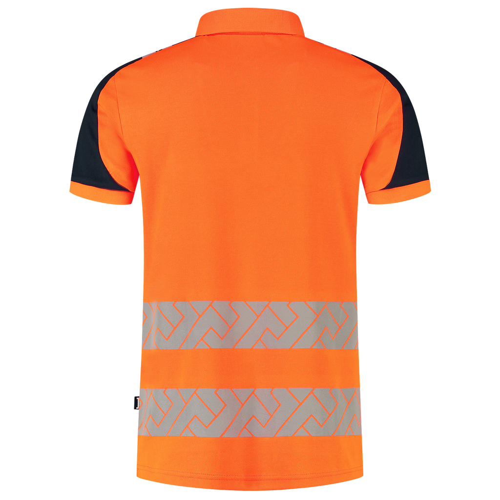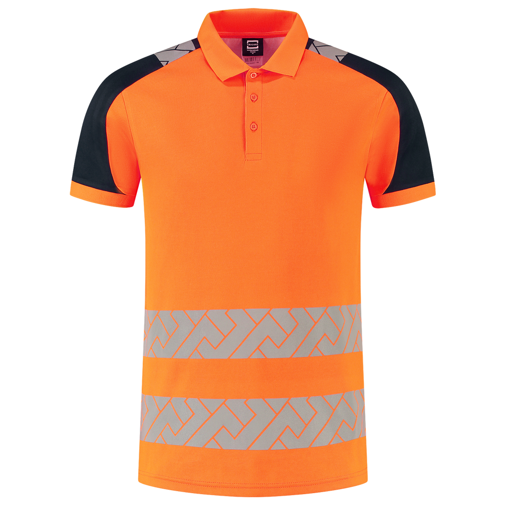 The Tricorp Polo Shirt High Vis Redefined from Tricorp is designed for professionals who do not compromise on safety, comfort and durability. This unisex polo shirt is made from a clever combination of 55% organic cotton and 45% recycled polyester and has a fabric weight of 180 g/m2, with the cotton on the inside providing extra softness and moisture absorption, and the polyester on the outside contributing to abrasion resistance and color fastness. Thanks to the segmented reflective striping around the torso and on the shoulders, the jersey meets the EN ISO 20471 standard for high visibility (class 2, XS class 1). The Polygiene® StayFresh technology prevents odor formation and keeps the shirt fresher for longer, even with daily use. The Pro Wash label guarantees that the shirt is industrially washable at 60 degrees, in accordance with EN ISO 15797, without loss of quality or visibility, making the polo shirt ideal for intensive working environments. In addition, the shirt offers UV protection with UPF 40+, certified according to EN 13758-2, which provides additional protection for outdoor work. This polo shirt is not only functional, but also environmentally conscious. It is certified according to OEKOTEX-100 and GRS (Global Recycled Standard), which confirms the origin and durability of the materials used. The Polo Shirt High Vis Redefined Industrial Washable is available from size XS to 5XL and comes in the colors Fluor Orange-Ink and Fluor Yellow-Ink. Combine this polo shirt with other items from the High Vis Redefined line for a complete, professional and durable work outfit.