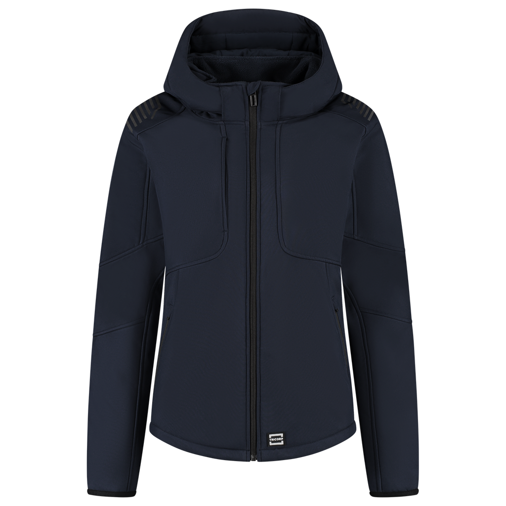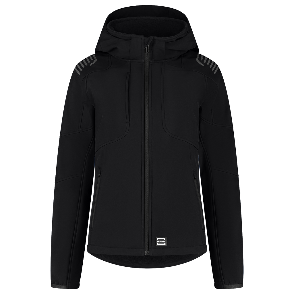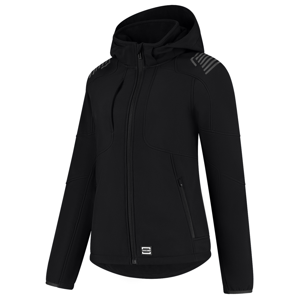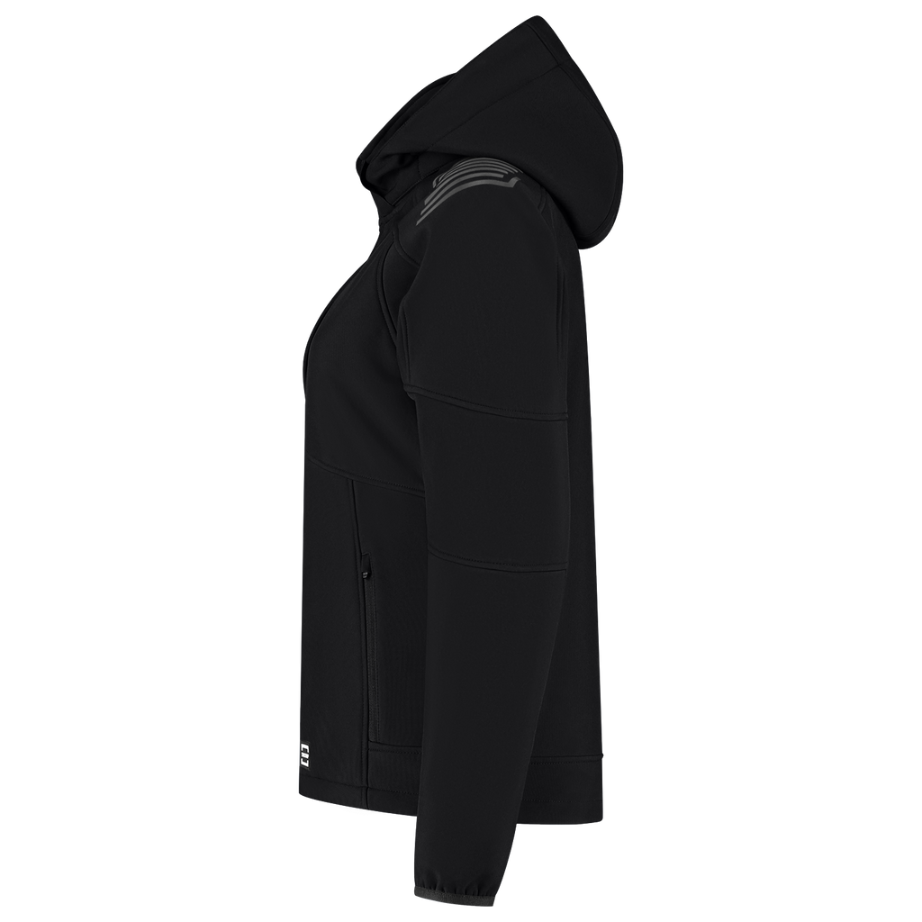 The Softshell Hood Luxe Redefined Women is designed for women who demand comfort and functionality in the workplace. This softshell jacket is made of 100% certified recycled polyester, equipped with a breathable and water-repellent TPU membrane, a fabric weight of 340 g/m2 and subtle reflective elements on the back and shoulders, perfect for those who work outdoors in cold or changing conditions. The feminine fit fits nicely to the body, while the detachable and adjustable hood, adjustable waistband, sleeves with cuff adjustment and the extended back panel ensure optimal wearing comfort and freedom of movement. With multiple functional pockets, including a secure zippered chest pocket, you'll have everything you need at your fingertips. This women's softshell is certified according to EN 14058 class 1-3 and is therefore ideal for colder working conditions. With this product, you also consciously choose sustainability. This softshell is GRS and OEKO-TEX® 100 certified, which means that you choose recycled materials, produced with respect for people and the environment Available in a nice women's fit, in sizes from XS to 5XL and the colors Black and Ink. Combine this jacket with other items from the Redefined line for a complete, professional and durable work outfit.