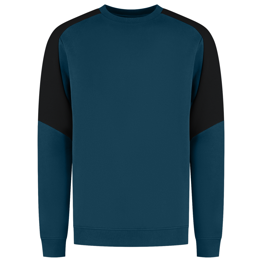 The Sweater Bicolor Redefined from Tricorp is a must have during the colder working days. This sustainable crew neck sweater is made from 65% organic cotton and 35% recycled polyester, made from durable 320 g/m² American fleece with a brushed interior for extra comfort. The bicolor color scheme is not only stylish, but also perfectly matches your corporate identity. Thanks to the regular fit and unisex fit, the Sweater Bicolor Redefined always fits well. Thanks to the OEKOTEX-100, RCS and OCS certifications, you can be sure that you are choosing a responsible option. The vest is washable at 60 degrees, available in sizes from XS to 5XL and can be supplied in the colors Black-Brightred, Black-Grey, Ink-Royalblue, Black-Brightred, Black-Orange, Ink-Royal Blaue, Teal-Black, White-Anthracite and Sand-Black. Combine this sweater with other items from the Redefined line for a complete, professional and sustainable work outfit.
