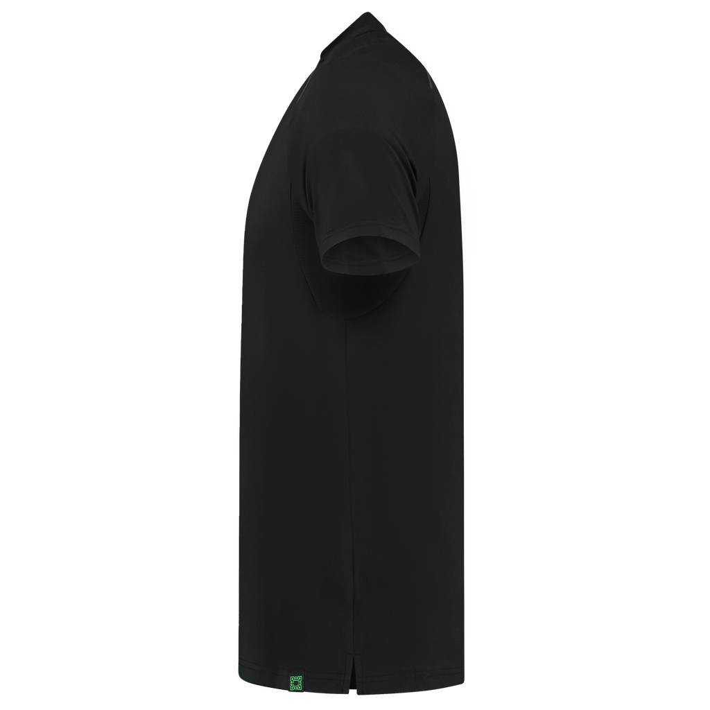 The sustainable V-Neck RE2050 T-shirt has a sporty and modern line. Thanks to the light weight and the fine stretch quality, the shirt is very comfortable to wear. This T-shirt contains Polygiene® technology. Polygiene® is a permanent finish based on silver chloride which prevents unpleasant odors. This has the advantage that the professional can wear the shirt for several days, resulting in fewer washes and therefore less water consumption, less energy consumption and above all preservation of the quality of the item. The reflective piping gives the shirt a sporty and modern look and provides reflective details. For extra ventilation, mesh cloth is used under the armpits. T-shirt V-Neck RE2050 is part of the RE2050 clothing package: a sustainable and circular clothing package. This T-shirt is made of 92% recycled polyester and 8% elastane. Thanks to the use of recycled PET bottles, CO2 emissions are lower and we use less water and energy during production than with a shirt with virgin polyester! This item is available in the colors Ink and Black and in the wide size range XS-5XL.