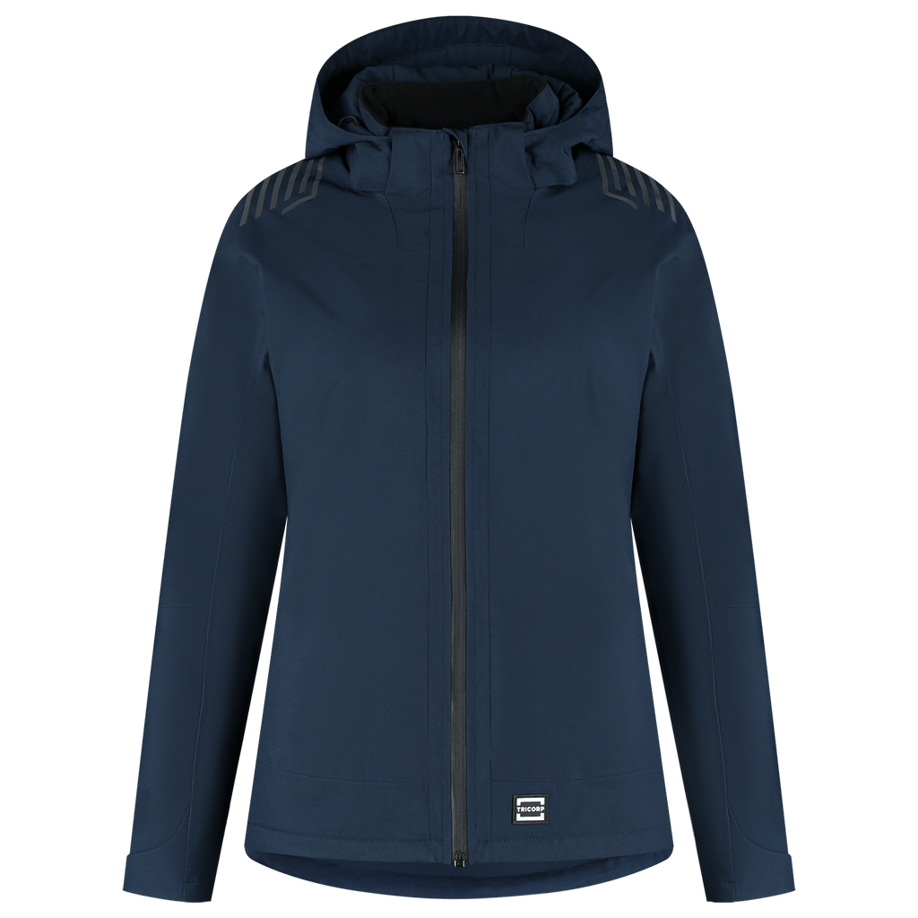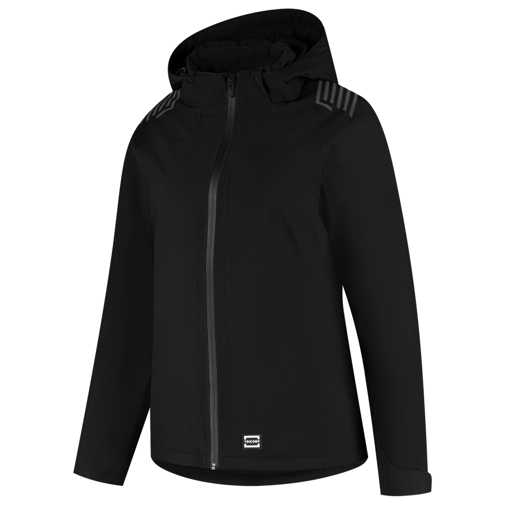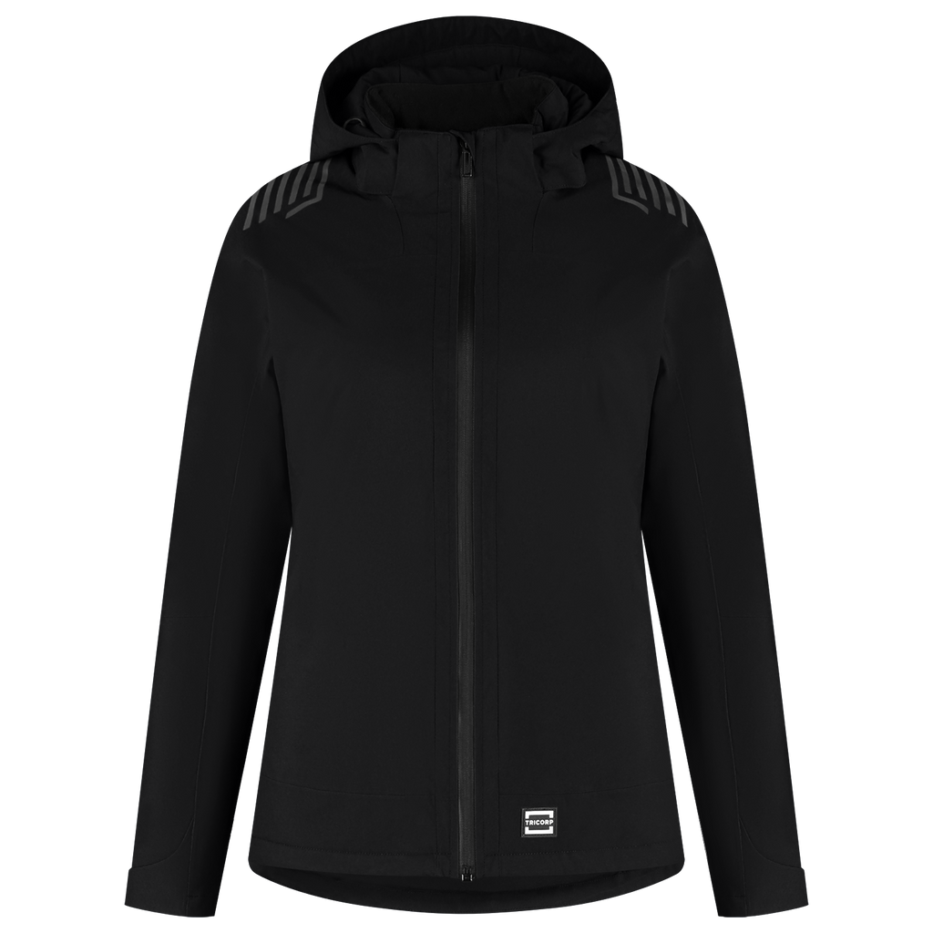 Whether it's storming, snowing or pouring from the rain: with the Winter Techshell Redefined Women from Tricorp you can keep working unhindered. This lined Techshell winter jacket has been specially developed for women who deliver top performance day in, day out, regardless of the conditions. Thanks to the waterproof and windproof Oxford material made of 100% recycled polyester, the breathable TPU membrane and the lightweight Primaloft® lining, you stay warm, dry and comfortable. The jacket meets the highest standards: EN 343 class 4-2 for protection against precipitation and EN 14058 class 3-3 for insulation against cold. Practical details such as a detachable, adjustable hood, waterproof zippers, adjustable cuffs and waist, an inner pocket with zipper and an extended back panel provide ultimate functionality. Finished with subtle reflective elements on the back and shoulders. The Winter Techshell Redefined has a women's fit and is available in the extensive size range from XS to 5XL, so that every professional will find the perfect fit, and the jacket is available in the colors Black and Ink. In addition, the Winter Techshell Redefined is a responsible choice: This softshell is GRS and OEKO-TEX® 100 certified, which means that you not only choose recycled materials, but the jacket is also produced with respect for people and the environment. Combine this jacket with other items from the Redefined line for a complete, professional and durable work outfit.