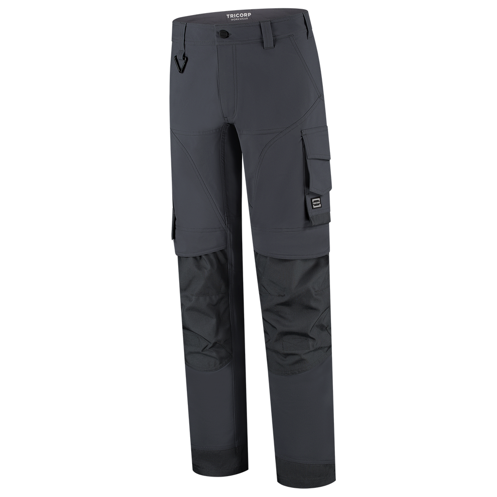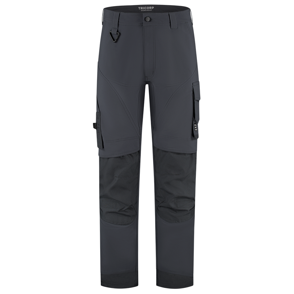 The Cordura 4-Way Stretch Redefined Work Pants from Tricorp is the perfect choice for professionals who do not want to compromise on comfort, durability or functionality. Made from 82% elastomultiester and 18% recycled polyester, with a fabric weight of 250 g/m², these pants offer an unrivalled 2-way stretch for maximum freedom of movement, even in the most demanding conditions. The combination of 4-way stretch, the water-repellent finish and ventilating zones in the back of the knees also guarantees optimal comfort during heavy physical work. The Cordura 4-way Stretch Redefined Work Trousers feature smart, well-thought-out details such as Cordura® reinforcements in vulnerable areas, a practical thigh pocket with volume pleat, ruler pocket, smartphone pocket with flap and sturdy back pockets. Everything is right where you need it, so you can continue to work efficiently. With the detachable D-ring and strong belt loops, tools and accessories have also been thought of. The wear-resistant Cordura® knee pockets, which are adjustable in height, are also ideal for anyone who regularly works on their knees. These work trousers are available in 3 different lengths from 42-66, 45-59 and 22-29, making them suitable for a wide target group of professionals. The regular fit ensures comfort and freedom of movement without looking sloppy. Moreover, the pants are certified according to OEKO-TEX® and GRS, so you can be sure that you are choosing responsible and high-quality workwear. The Cordura 4-Way Stretch Redefined Work Trousers are available in the colours Anthracite, Black, Ink, Sand, White and Teal. Combine these pants with other items from the Redefined line for a complete, professional and durable work outfit.
