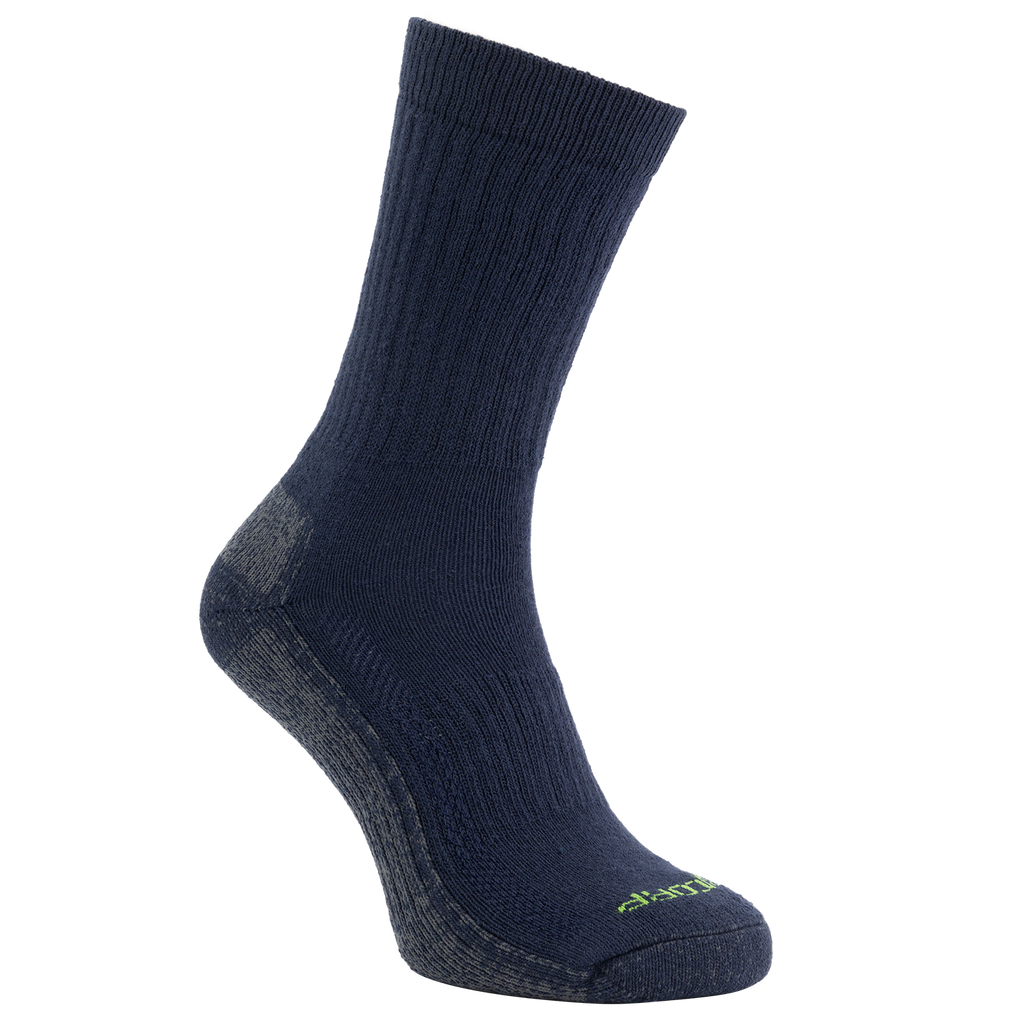 With the new Circular Work Socks from Tricorp you want to be on the move all day long! The comfortable terry footbed ensures optimal wearing comfort. You don't feel the toe seam. The reinforced heel and toe have been added for protection and a longer lifespan. A smart mix of recycled cotton, recycled polyester, polyamide and elastane makes the work sock work with you.